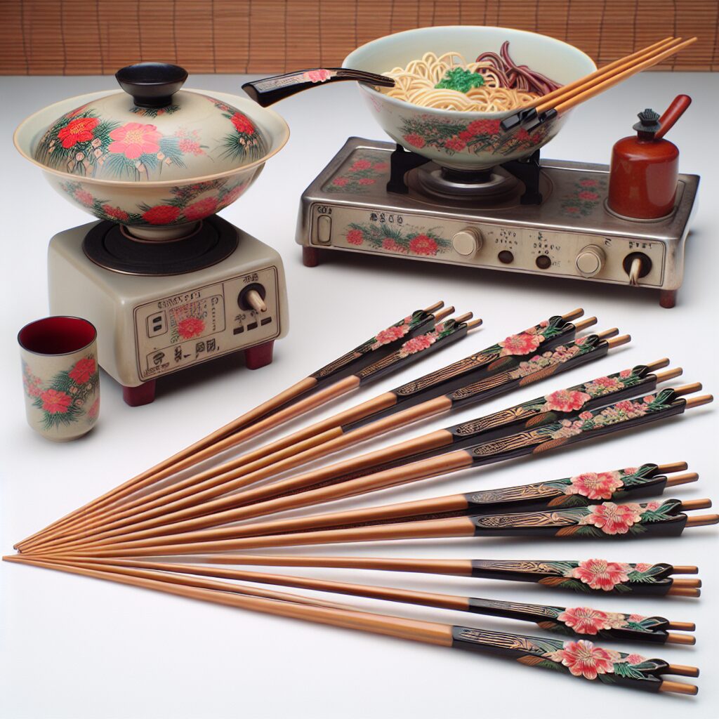 花柄模様の菜箸は、時には手書きのような繊細さを持ち、その華やかさがシンプルなキッチンに彩りを添えていました。このデザインは、単に見た目の美しさだけでなく、家事をより楽しくするための重要な要素でもありました。特に、多忙な日々を送る主婦たちにとって、少しでも明るく楽しい気分で炊事に励むことができるようにと、デザイン選びを楽しむ習慣が広まっていったのです。