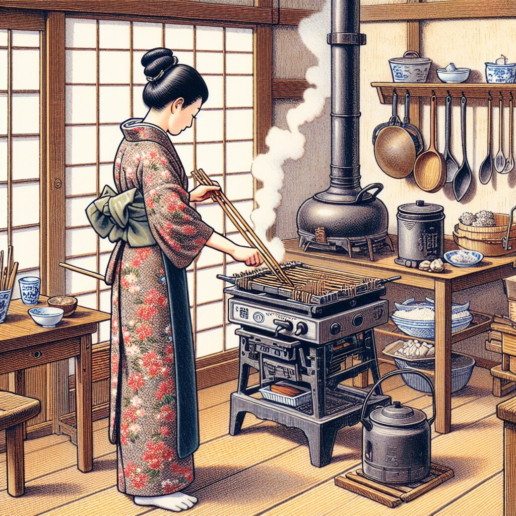 当時の家庭料理や炊事の風景は、一つの文化を形成し、そのシンボルとも言えるのが「異様に長い菜箸」でした。