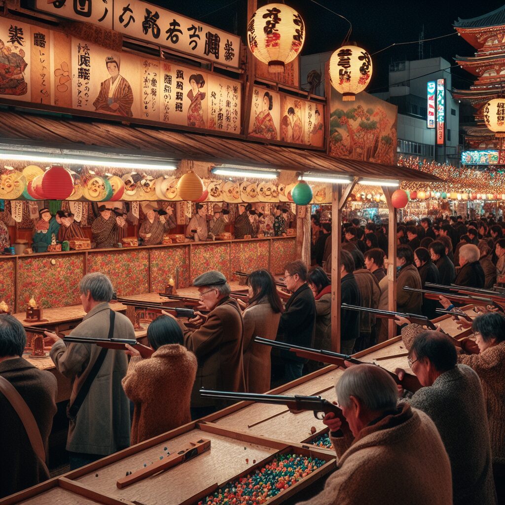 時代が進み、現代においても射的は観光地やイベントのアトラクションとして生活に取り入れられています。安全対策やルールが整備されたことで、現代の射的は誰もが楽しめる遊びとして進化してきましたが、その難しさはある意味変わらず残っています。特に手に入れたい景品に手を伸ばす心境は、時代を超えて共通する射的の魅力なのです。昭和の懐かしさを感じさせるポンプアクションの銃や、後に続く親たちの微笑ましい視線。それらが合わさり、射的は今も昔も、お祭りの夜の特別な時間を彩り続けています。