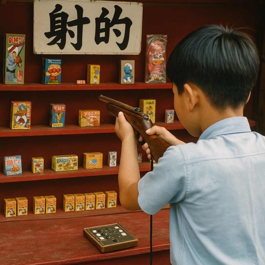時代が進み、現代においても射的は観光地やイベントのアトラクションとして生活に取り入れられています。安全対策やルールが整備されたことで、現代の射的は誰もが楽しめる遊びとして進化してきましたが、その難しさはある意味変わらず残っています。特に手に入れたい景品に手を伸ばす心境は、時代を超えて共通する射的の魅力なのです。昭和の懐かしさを感じさせるポンプアクションの銃や、後に続く親たちの微笑ましい視線。それらが合わさり、射的は今も昔も、お祭りの夜の特別な時間を彩り続けています。