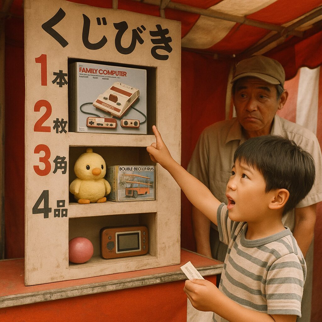 それでも、子どもたちは小さなおもちゃや飴玉といった2等以下の景品を目にしながらも、1等を当てるという夢を持ち続けていました。くじ引きには、成功するかどうか分からないという不確実性があるからこそ、挑む価値があり、楽しさが詰まっていました。そして、その体験は単なるゲームの垣根を超え、祭り全体の雰囲気と相まって、特別な思い出として今も心に残ります。