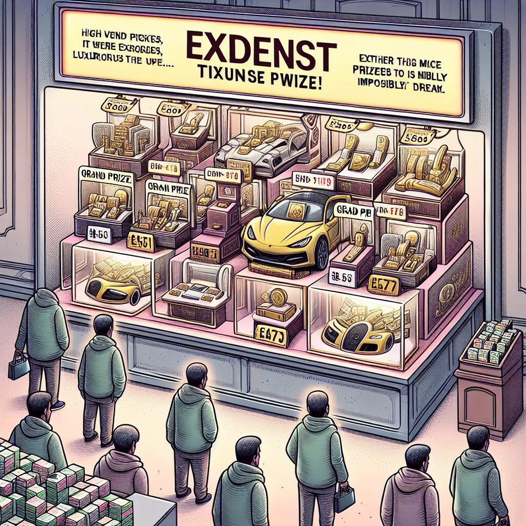 豪華な景品が並ぶ光景に期待が膨らみますが、その裏には一抹の現実が隠されていました。