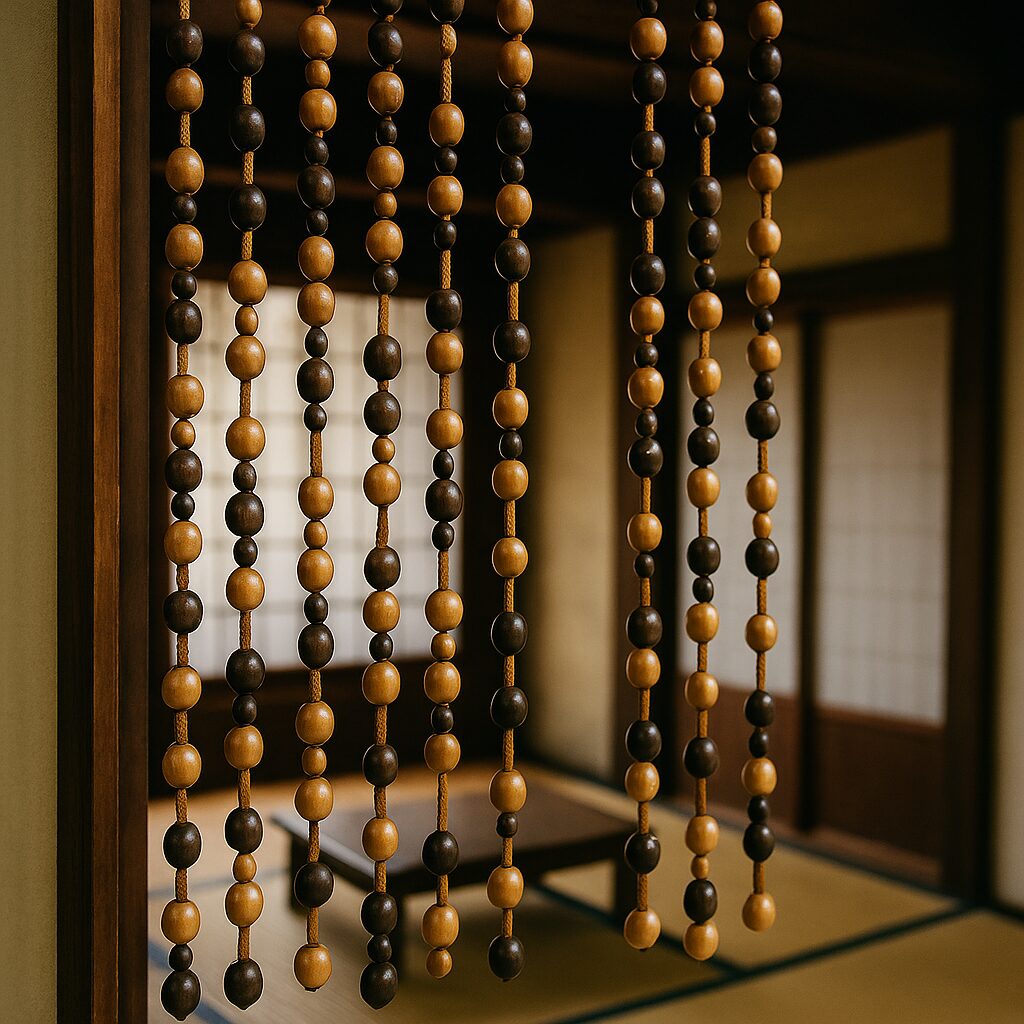 玉暖簾の実用性はこれだけに留まりません。視覚効果で空間の仕切りとして活用され、家族のプライバシーを保ちながらも、開放的な空間演出に活かされました。また、その音色は、家の中を和ませる音楽のような効果を生み出し、家族の団らんや会話のきっかけにもなりました。特に音で家族の所在を確認するという点は、家が広くなった現代にも価値があり、リビングやキッチン、各部屋をつなぐコミュニケーションツールとして再評価されています。