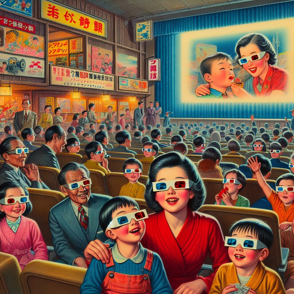 赤と青のセロファンでできた小さな3Dメガネをかけ、スクリーンに向かって胸を高鳴らせた子供たちや、それを見守る大人たち。