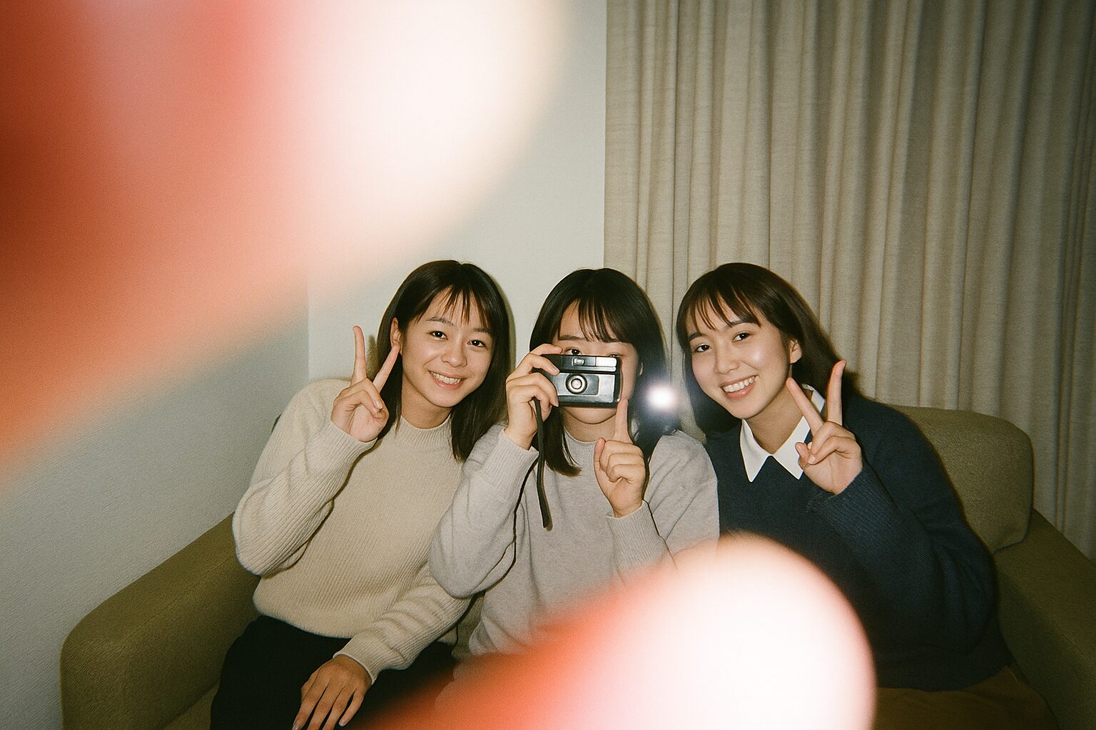 また、フラッシュの加減が難しく、暗すぎたり逆に明るすぎたりすることは多々ありました。こうした失敗も含めて写真の現像が出来上がるまで何が撮れているかわからないというワクワク感が、使い捨てカメラの楽しみの一部となっていました。写真屋さんで現像を待つ間のドキドキ感、現像結果を友人たちと一緒に確認する楽しさも、使い捨てカメラの魅力でした。