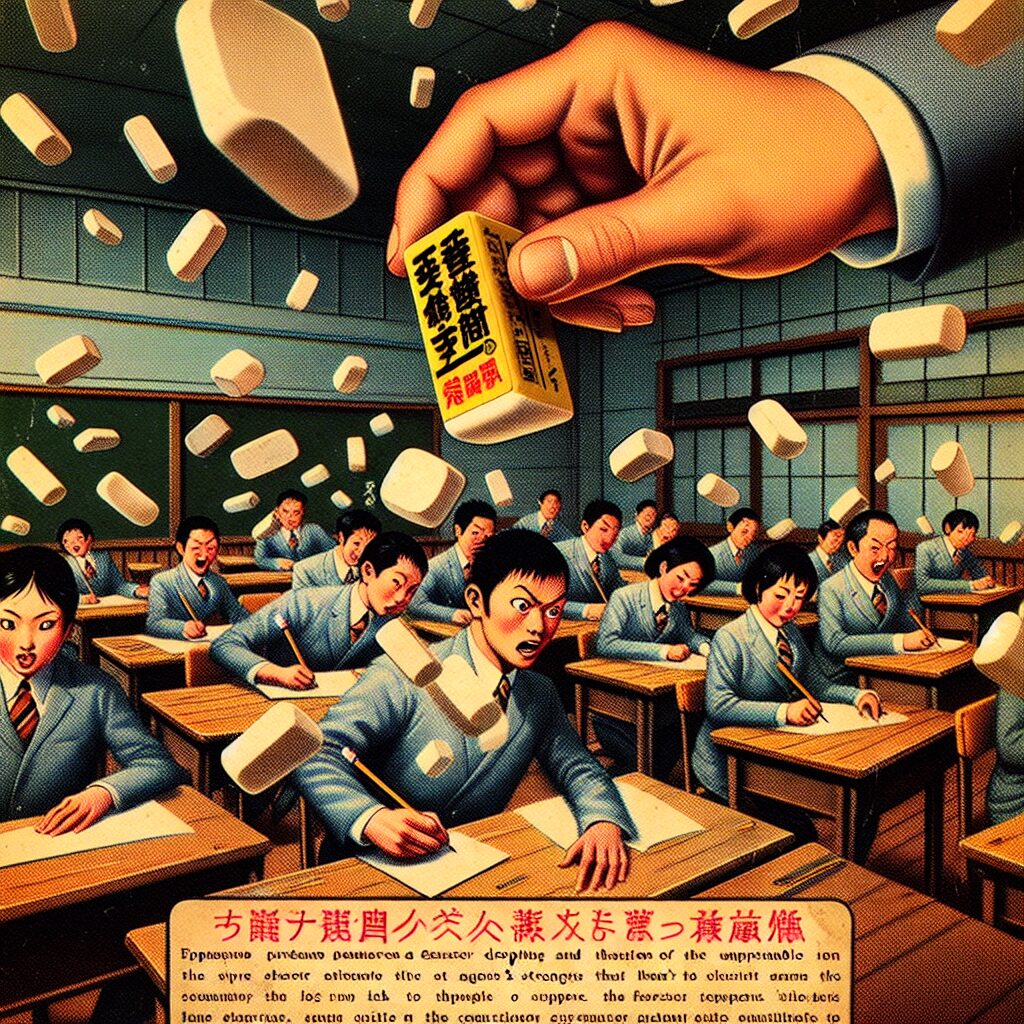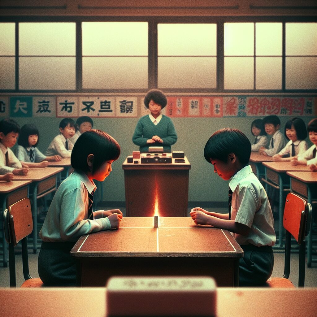 結果が予想できないため、いつどのように勝敗がつくか分からないスリルも、この遊びの面白さの一つでした。時には運が作用して、期待以上の結果を生むこともあるでしょう。この遊びを通じて、ただ楽しいだけでなく、仲間たちとのコミュニケーションの場が広がり、友情を深める手段ともなったのです。昭和の子供たちにとって、『消しゴム落としバトル』は単なる遊びを超えて、心に残る思い出となっていたに違いありません。