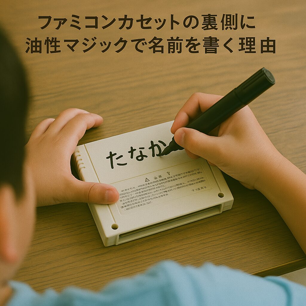 昭和時代、多くの小学生にとってファミコンのカセットは日常の中で特別な存在でした。高価であったため、慎重に扱う必要があり、友達へ貸し出す際もどこか緊張感が伴ったものでした。名前を書くことは、友達とのカセットの交換が盛んに行われる中で、紛失防止や貸し借りの際の混乱を避けるためのひとつの対策でもありました。ラベルに自分の名前が書かれていれば、一目でそのカセットが誰のものであるか分かり、友達が間違えて持ち帰ることを防げます。