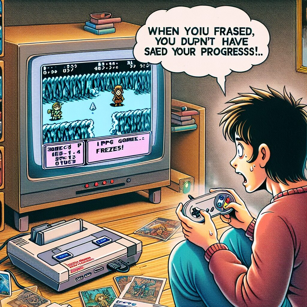現代では当たり前となったオートセーブやクラウドセーブがなかった時代、ゲームの進行中に予期せぬ状況で保存データが消えることは、当時のプレイヤーにとって重大な問題でした。