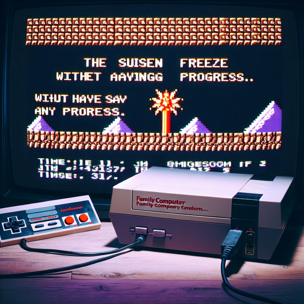 この時代特有のあるあるネタとして、突然のゲームフリーズやデータ消失のエピソードがしばしば語り継がれています。