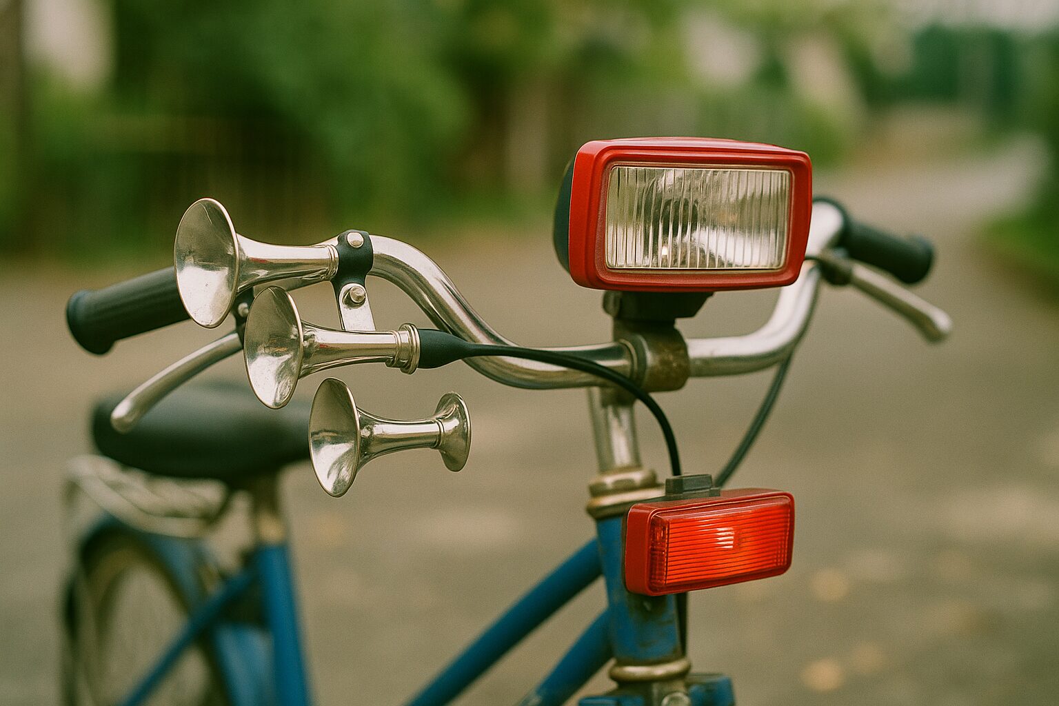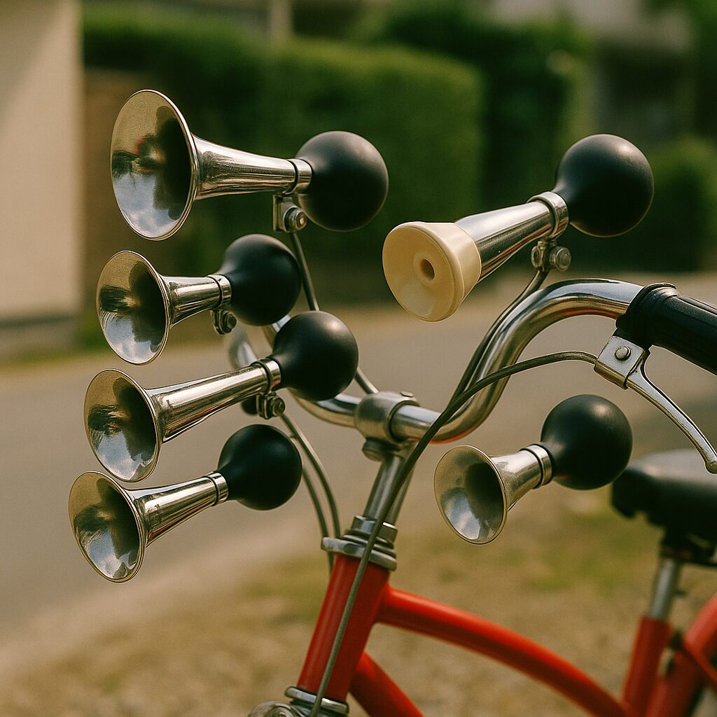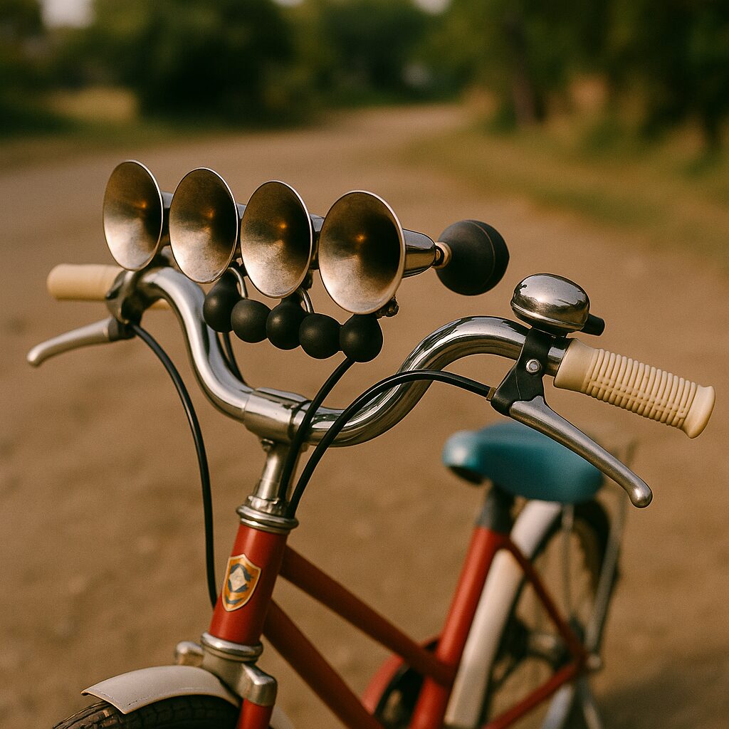 自転車は、学校への通学、遊びに行く際の移動手段として活用されるだけでなく、友達との交流を深めるツールとしても機能していました。特に人気だったのが、自転車のハンドルに取り付けるラッパです。町の中を走り抜ける際にその音を響かせることが、一つのステータスだったと言えます。シングルタイプから4連ラッパまであり、その取り付け個数を競い合う子供たちの姿がありました。走るたびに音を立てるそのラッパは、まさに自転車を華やかにするアイテムの一つでした。