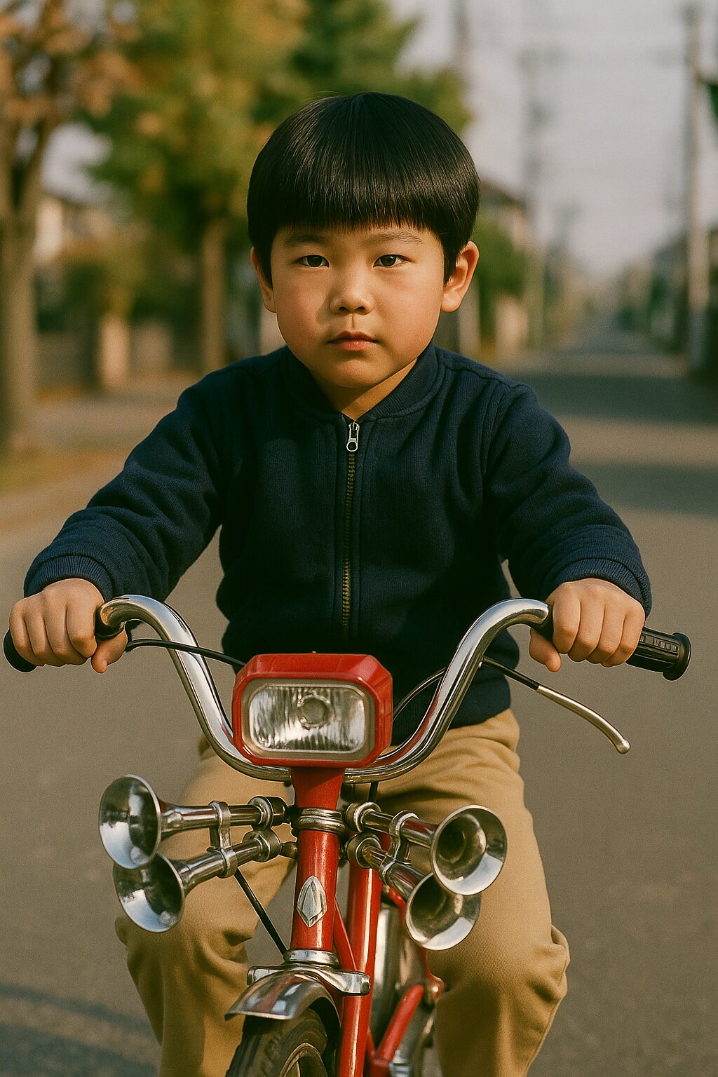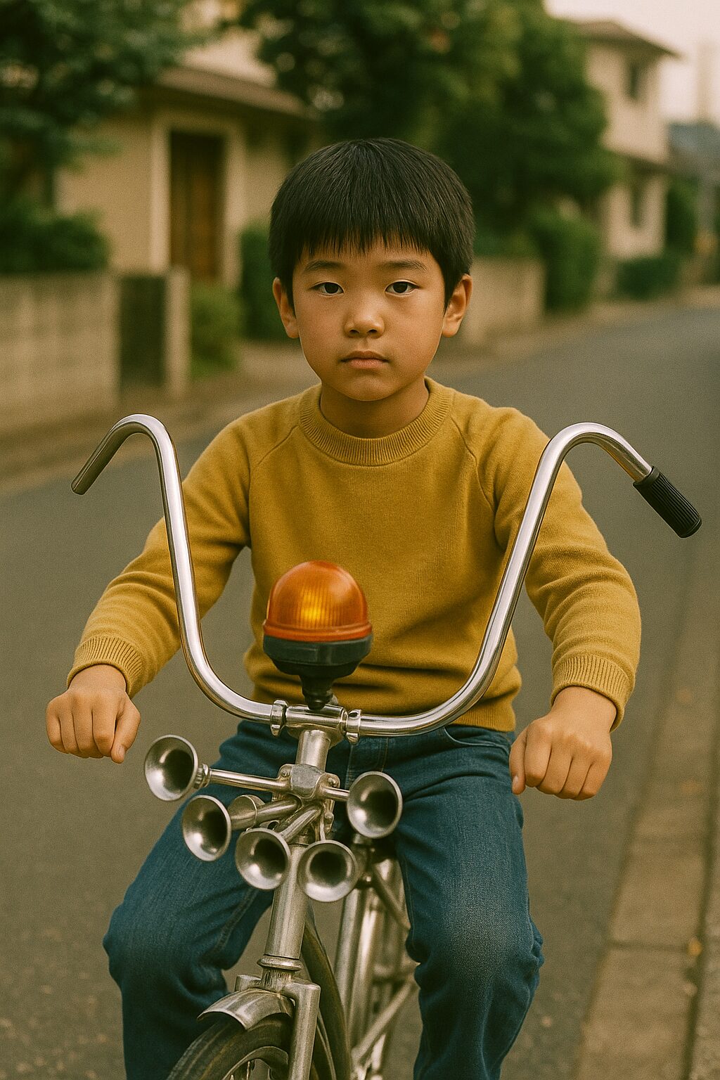さらに、小学生たちは自転車を自分なりにカスタマイズすることで、個性を表現していました。ラッパを取り付けるというのはその代表的な一例です。ハンドルに取り付けられたラッパは1連から4連まであり、その音を町に響かせることで自分をアピールしていました。特に4連ラッパを持つことは、子どもたちの間で一つのステータスであり、自転車を自慢するための大きな要素となっていました。