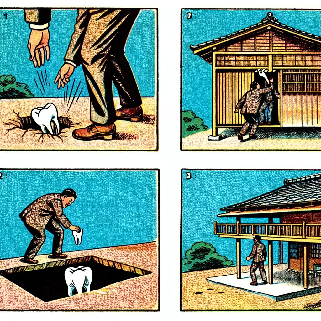 この風習は、上の歯が抜けたら地面に、下の歯が抜けたら屋根に投げるというものでした。