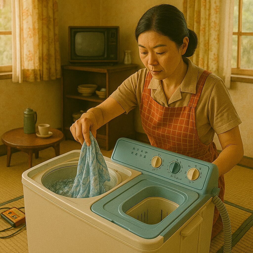 現代では全自動洗濯機が一般的となり、手間のかからない家電が主流ですが、昭和の時代においてはこの手間が日常生活の一部として欠かせないものでした。