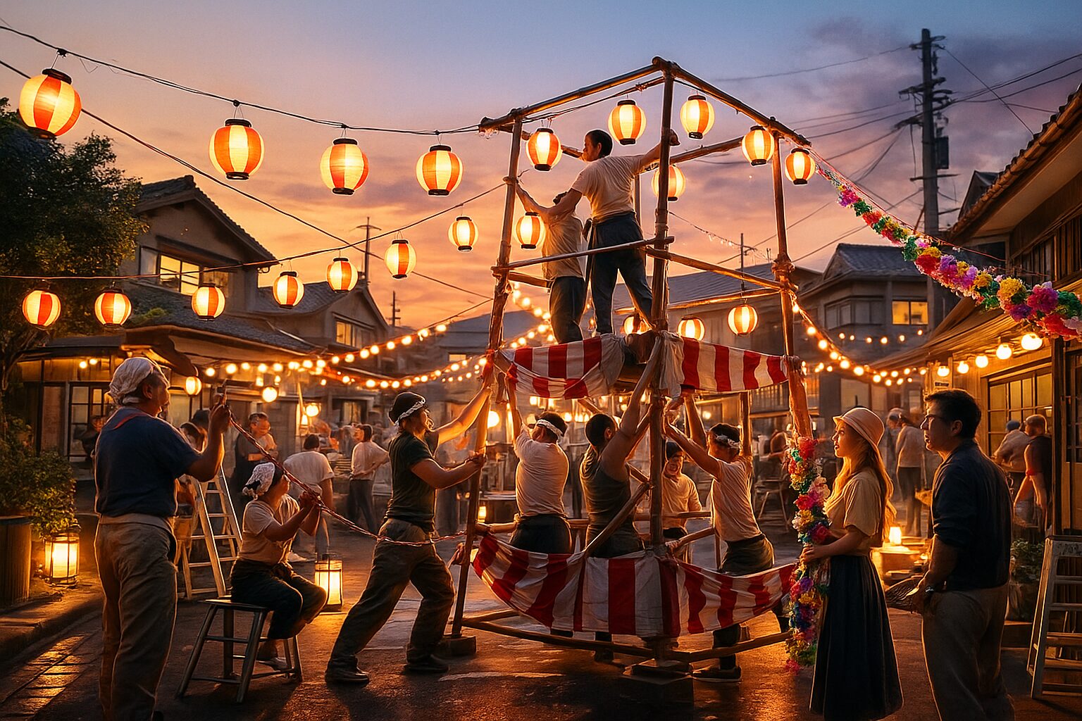 準備段階から見える地域の熱意と団結力は、昭和の町内会による盆踊りの本質とも言えます。
