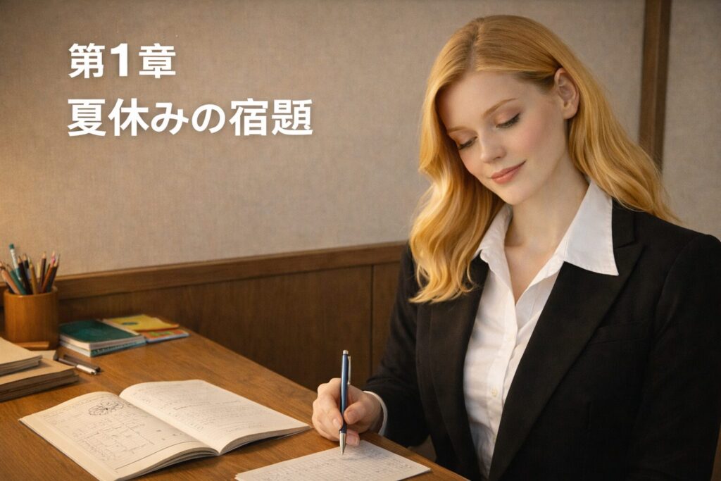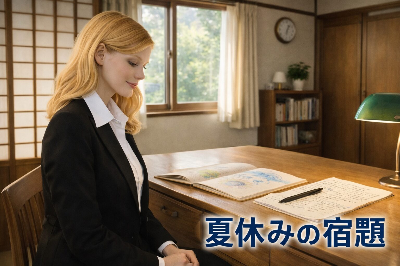 夏の思い出をたどりながらワークブックを開き、時折親に手伝ってもらうことで終わらせる宿題。