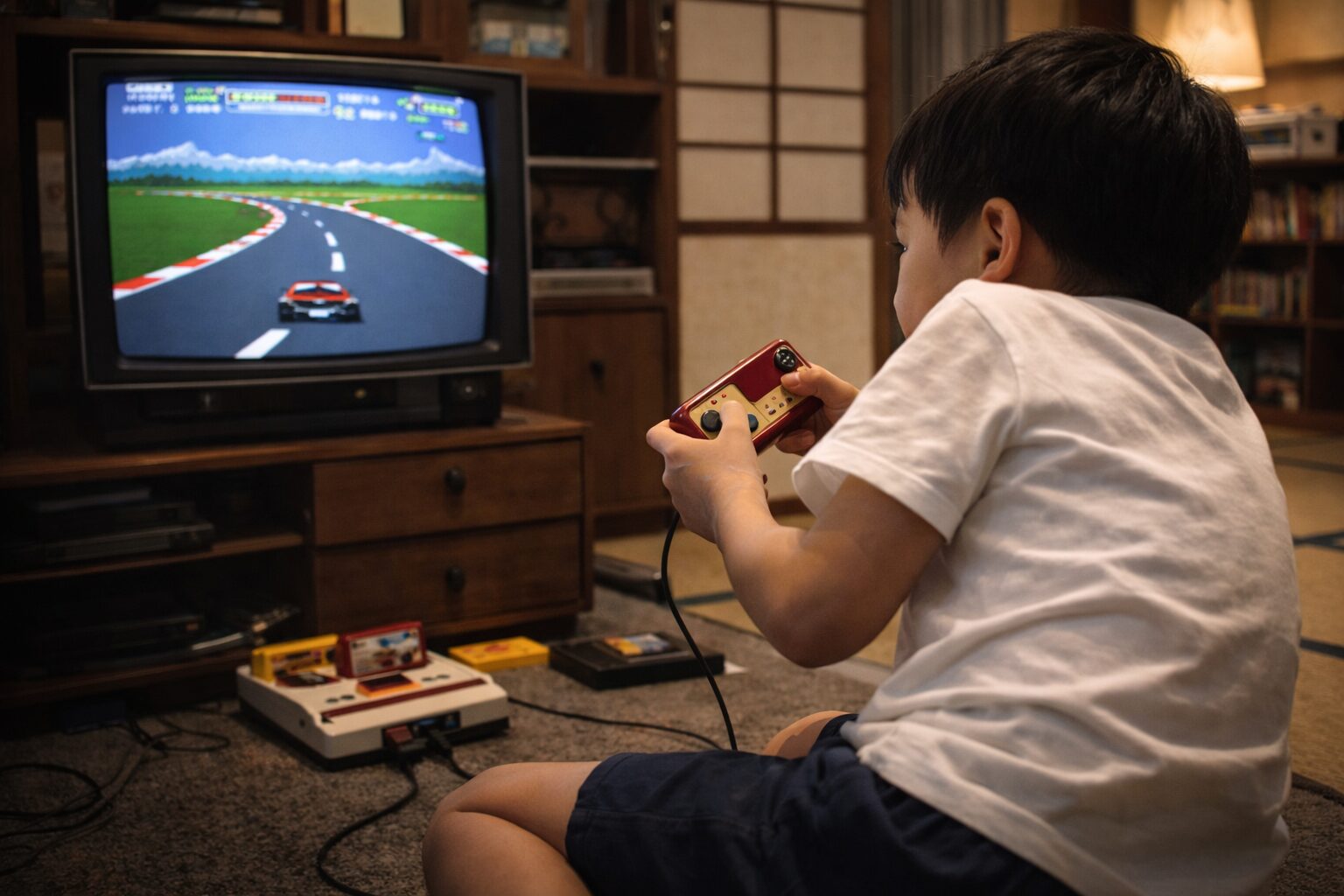 昭和後期あるある~ファミコンでゲームに熱中しすぎて、体が一緒に動いてしまう。特にレースゲーム。昭和後期のファミコン時代、レースゲームはプレイヤーにリアルな没入感を提供し、体を動かす現象が多く見られました。特に『F1レース』はその象徴で、家庭でのゲーム体験は今も記憶に残ります。
