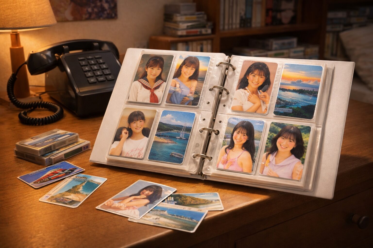 アイドルの写真や観光地のテレカをファイリングして集める(使わない)。昭和後期に普及したテレホンカードは、通話手段以上の文化的価値を持ち、アイドルやアニメデザインが人気を集め、今も懐かしさを呼び起こす存在です。